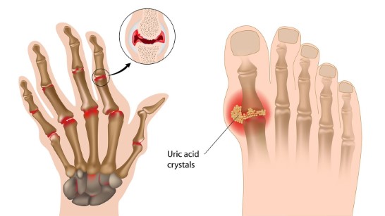 이 노폐물이 빠지지않고 쌓이면 작은 결정으로 변할 수 있습니다. 이 결정이 관절에 발생하면 심한 통증을 느끼게 됩니다.