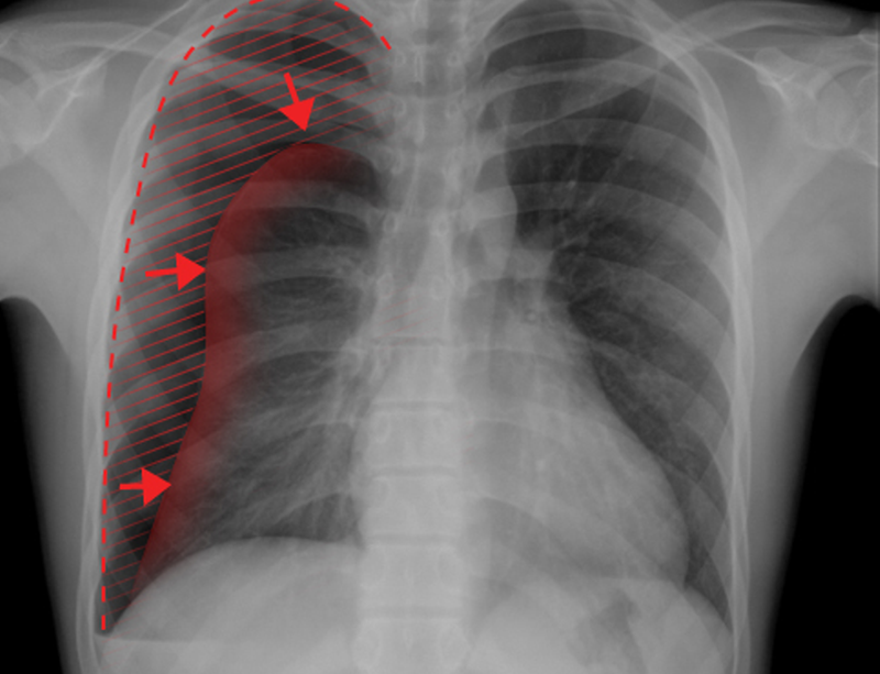 기흉은 호흡할때 폐를 완전히 팽창하지 못하게 만듭니다. 이는 오른쪽 가슴통증을 유발할 수 있습니다.