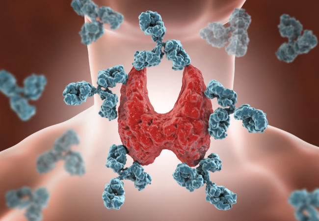 면역체계가 갑상선을 공격하여 염증을 일으키고 갑상선 호르몬생성의 이상을 유발합니다.